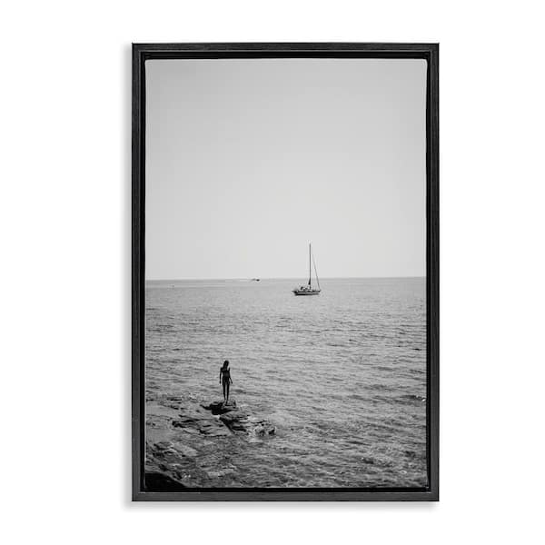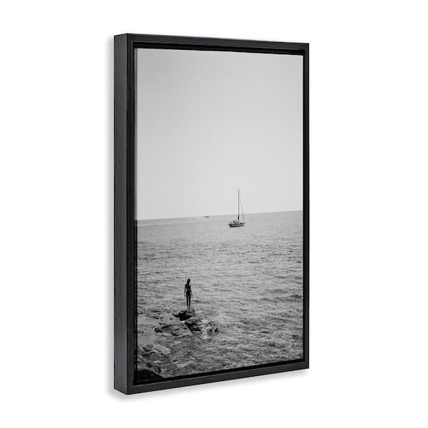 Standing On Edge Seascape by LSR Design Studio Black Floater Frame People Graphic Art Print 31 in. x 21 in.