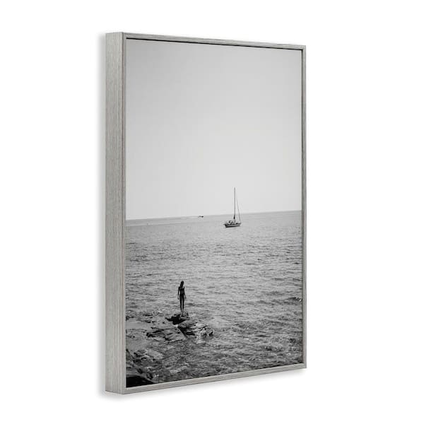 Standing On Edge Seascape by LSR Design Studio Gray Framed People Giclee Art Print 30 in. x 20 in.