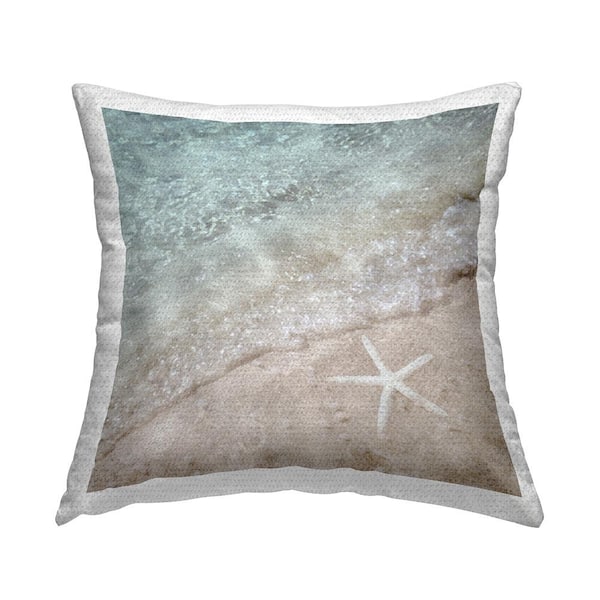 Starfish on Beach Shore Tan Square Outdoor Throw Pillow