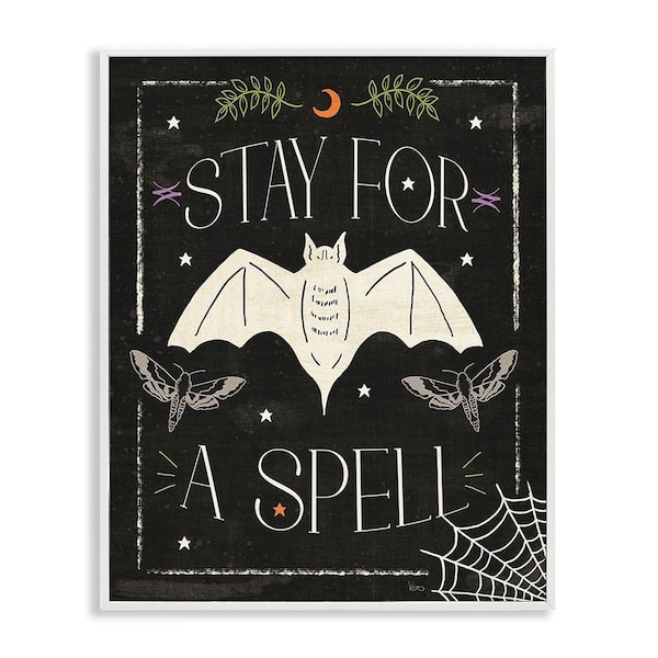 Stay For A Spell Phrase by Veronique Charron 1-Piece Framed Graphic Print Typography Poster Art Print 20 in. x 16 in.