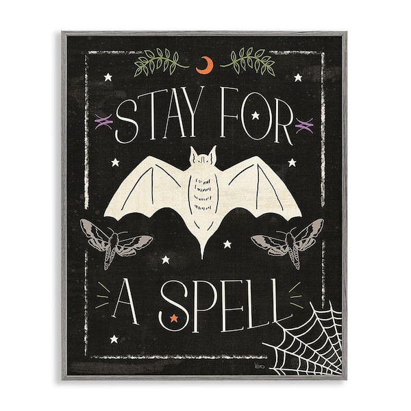 Stay For A Spell Phrase by Veronique Charron 1-Piece Framed Graphic Print Typography Poster Art Print 30 in. x 24 in.