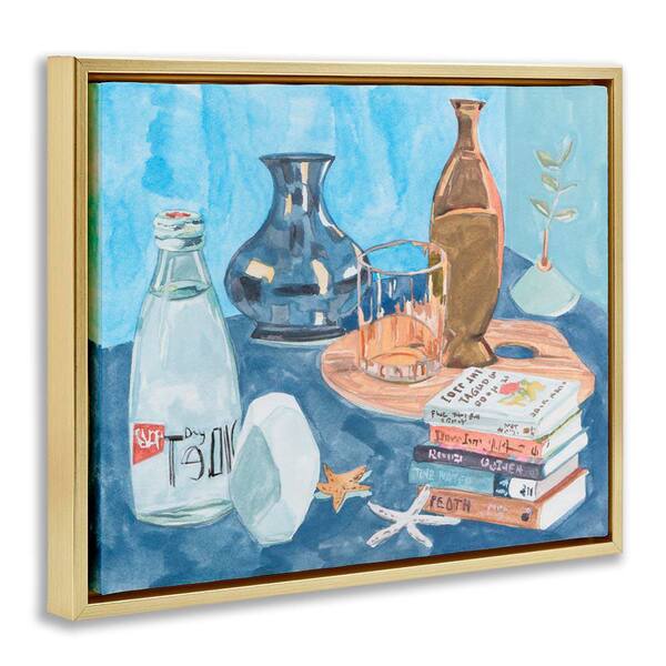 Still Life with Book Stack by Melissa Wang Gold Floater Frame Typography Graphic Art Print 25 in. x 31 in.