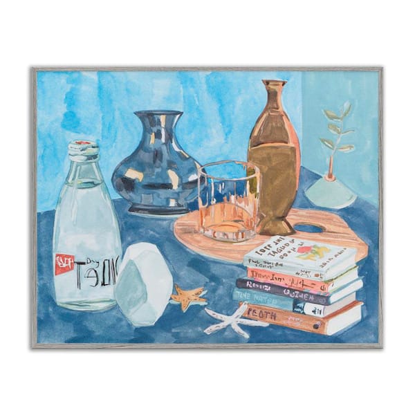 Still Life with Book Stack by Melissa Wang Gray Framed Typography Giclee Art Print 16 in. x 20 in.