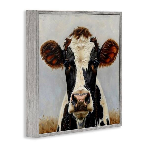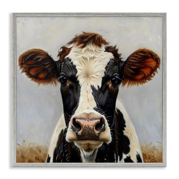 Stoic Cow Gaze Portrait by LSR Design Studio Gray Framed Animal Giclee Art Print 17 in. x 17 in.