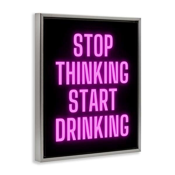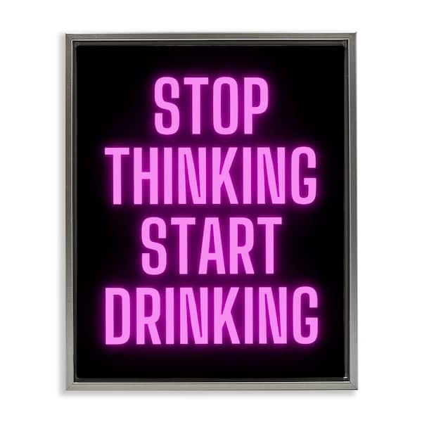 Stop Thinking Start Drinking by House of Lulu Gray Floater Frame Typography Graphic Art Print 31 in. x 25 in.