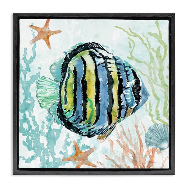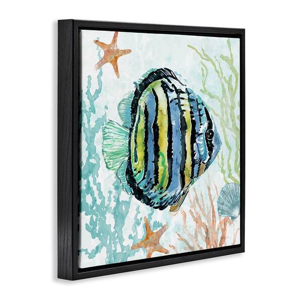 Striped Angel Fish by Carol Robinson Black Floater Frame Animal Graphic Art Print 25 in. x 25 in.
