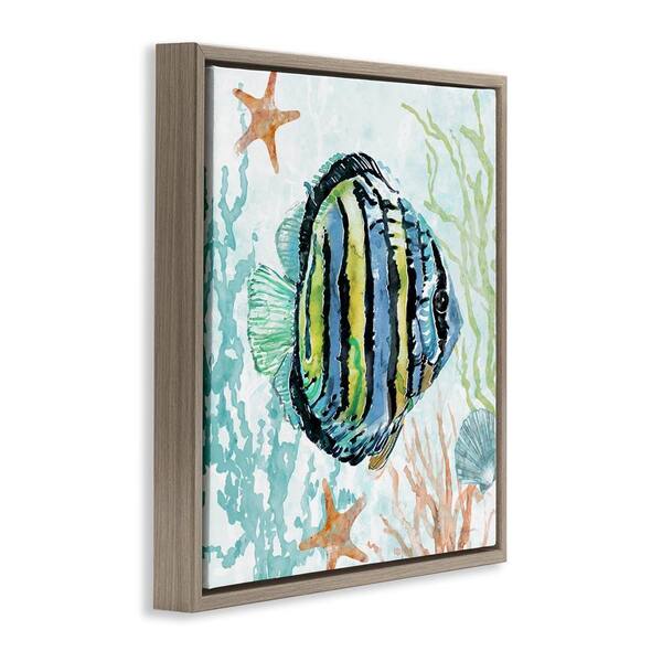 Striped Angel Fish by Carol Robinson Brown Floater Frame Animal Graphic Art Print 18 in. x 18 in.