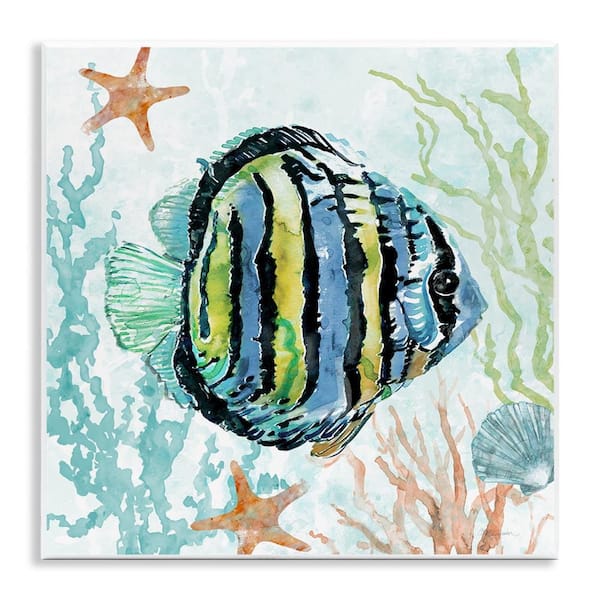 Striped Angel Fish by Carol Robinson Unframed Animal Graphic Art Print 12 in. x 12 in.