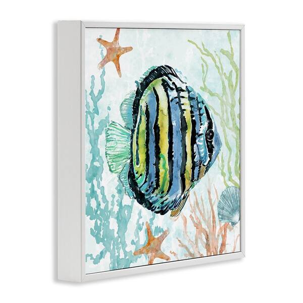 Striped Angel Fish by Carol Robinson White Framed Animal Giclee Art Print 17 in. x 17 in.