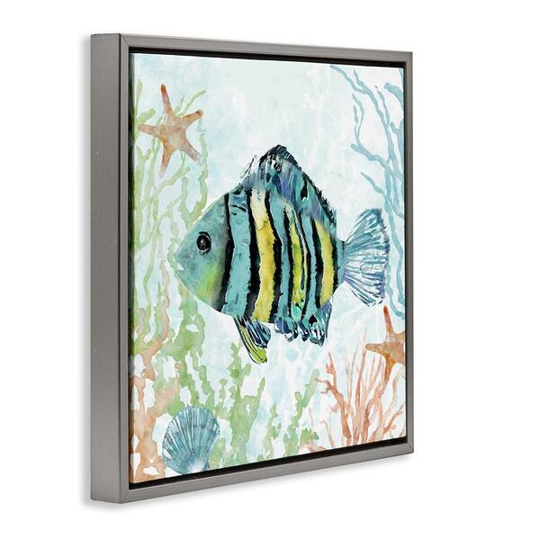 Striped Fish Underwater by Carol Robinson Gray Floater Frame Animal Graphic Art Print 18 in. x 18 in.