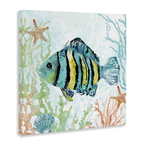 Striped Fish Underwater by Carol Robinson Unframed Animal Graphic Art Print 30 in. x 30 in.
