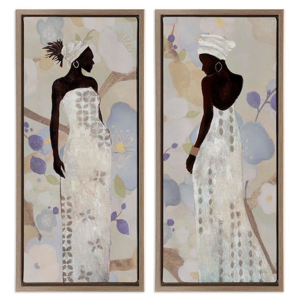 Stylish Neutrals Women by Janet Tava 2-Pieces Brown Floater Frame People Graphic Art Print 25 in. x 11 in.