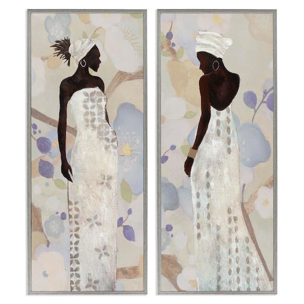 Stylish Neutrals Women by Janet Tava 2 Pieces Gray Framed People Giclee Art Print 24 in. x 10 in.