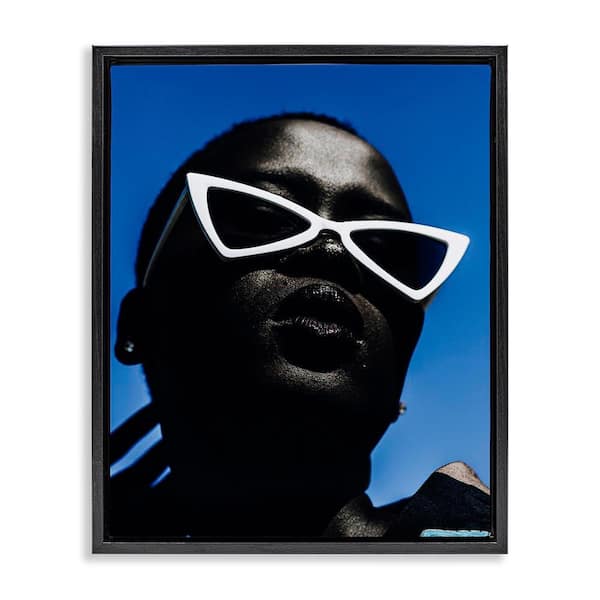 Stylish Sunglasses on Blue by Oladimeji Odunsi Black Floater Frame People Graphic Art Print 31 in. x 25 in.