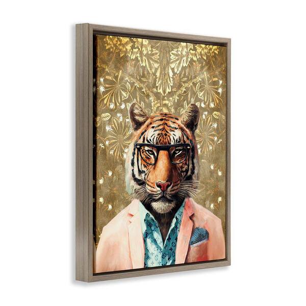 Stylish Tiger Gold Wall by Svetlana Aleynikova Brown Floater Frame Animal Graphic Art Print 31 in. x 25 in.