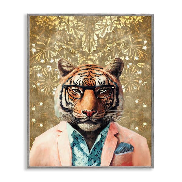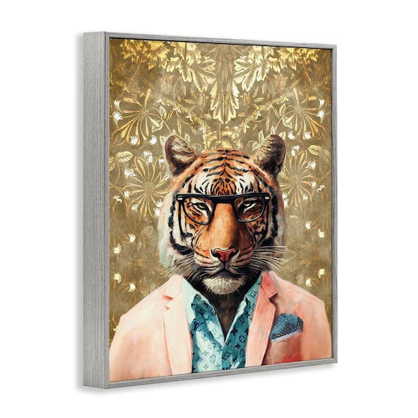 Stylish Tiger Gold Wall by Svetlana Aleynikova Gray Framed Animal Giclee Art Print 20 in. x 16 in.
