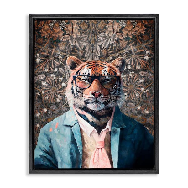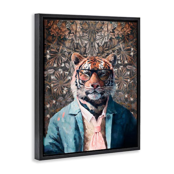 Stylish Tiger in Glasses by Svetlana Aleynikova Black Floater Frame Animal Graphic Art Print 31 in. x 25 in.