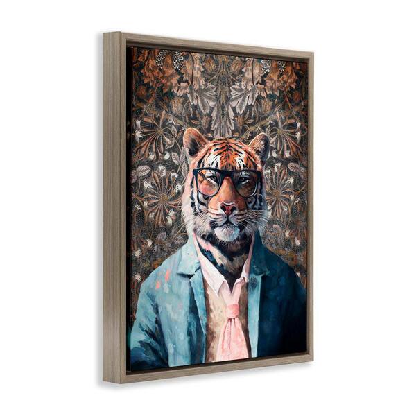 Stylish Tiger in Glasses by Svetlana Aleynikova Brown Floater Frame Animal Graphic Art Print 21 in. x 17 in.