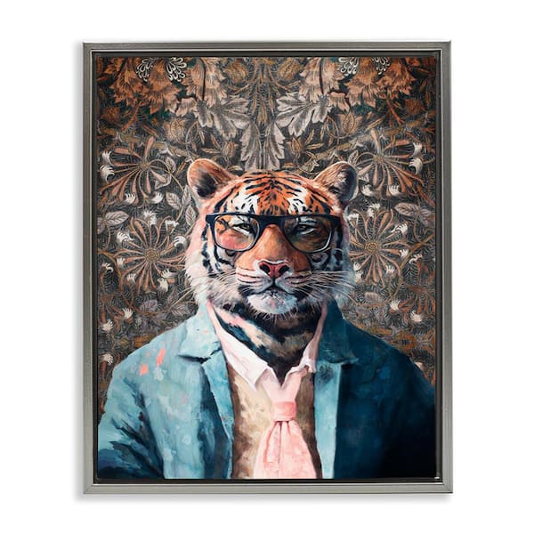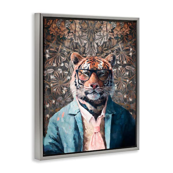 Stylish Tiger in Glasses by Svetlana Aleynikova Gray Floater Frame Animal Graphic Art Print 31 in. x 25 in.
