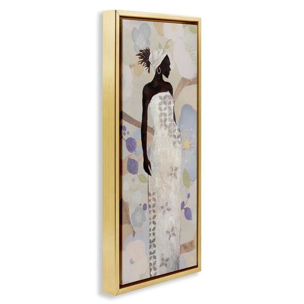 Stylish Woman Neutral Tones by Janet Tava Gold Floater Frame People Graphic Art Print 25 in. x 11 in.