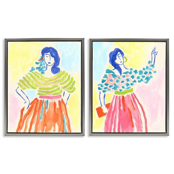 Stylish Women Bright Hues by June Erica Vess 2-Pieces Gray Floater Frame People Graphic Art Print 21 in. x 17 in.