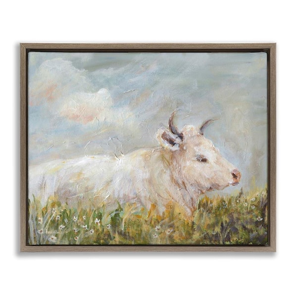 Subtle Cattle Sun Bathing by Amanda Hilburn Brown Floater Frame Animal Graphic Art Print 17 in. x 21 in.