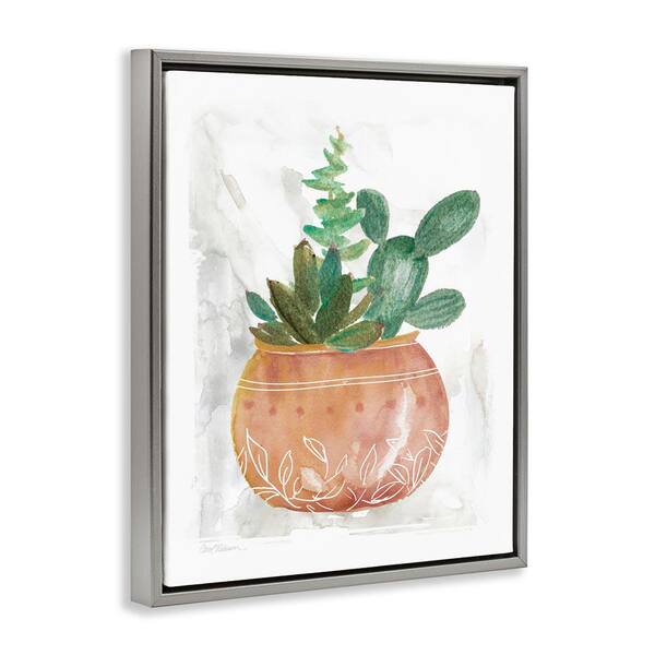 Succulent Planter Vase by Carol Robinson Gray Floater Frame Nature Graphic Art Print 21 in. x 17 in.