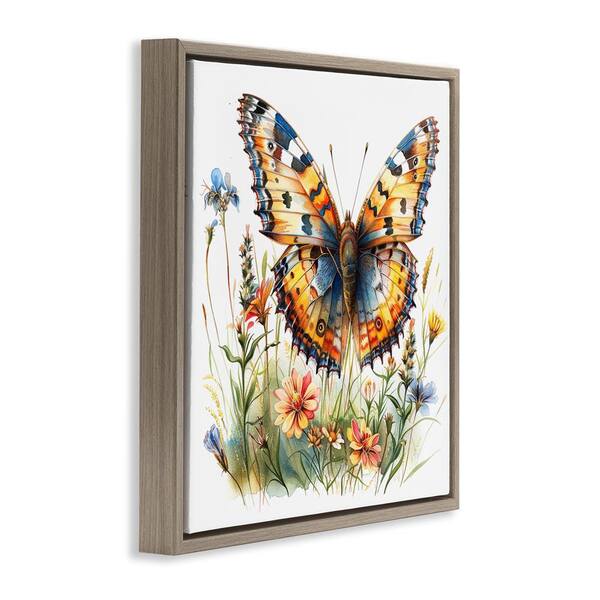 Summer Garden and Butterfly by LSR Design Studio Brown Floater Frame Animal Graphic Art Print 18 in. x 18 in.