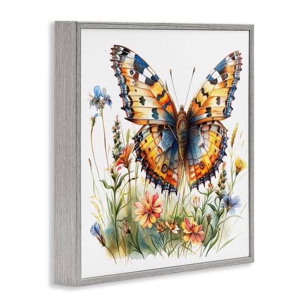 Summer Garden and Butterfly by LSR Design Studio Gray Framed Animal Giclee Art Print 12 in. x 12 in.