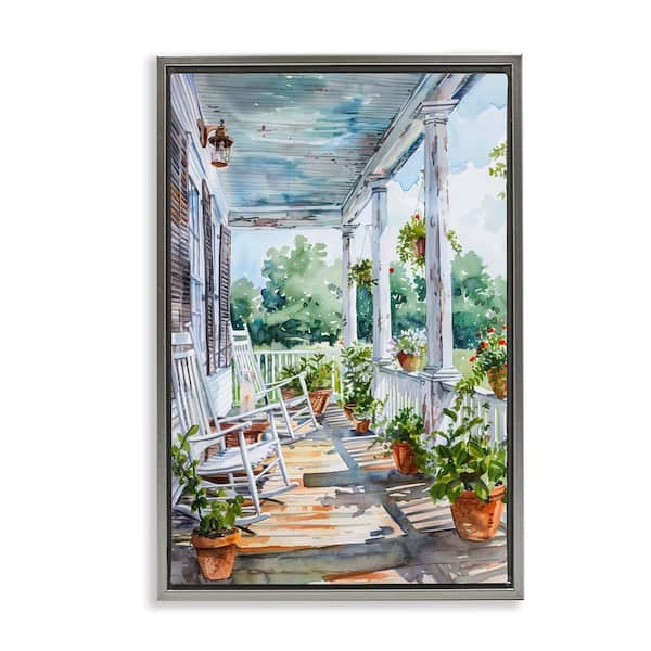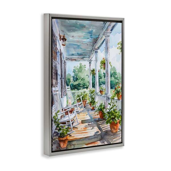 Summer Plant Filled Porch by Franklyn Gregory Gray Floater Frame Architecture Graphic Art Print 25 in. x 17 in.