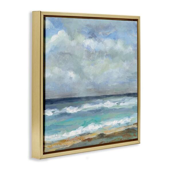 Summer Seashore Waves by Silvia Vassileva Gold Floater Frame Coastal Graphic Art Print 18 in. x 18 in.