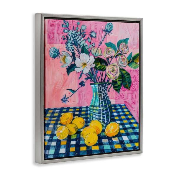 Summer Table Bouquet by LSR Design Studio Gray Floater Frame Nature Graphic Art Print 31 in. x 25 in.