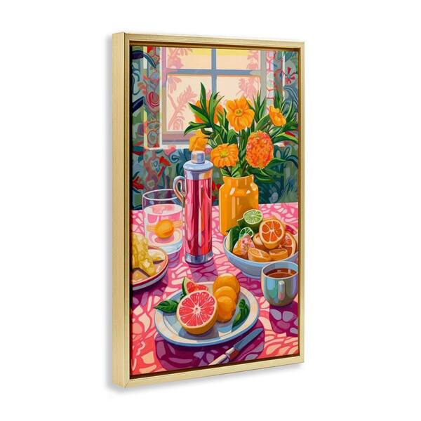 Summer Table Spread by LSR Design Studio Gold Floater Frame Food Graphic Art Print 25 in. x 17 in.