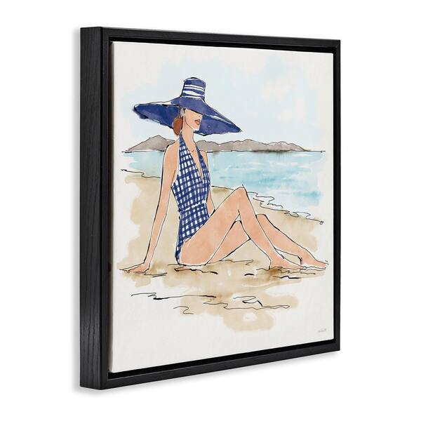 Sun Bathing Beauty by Anne Tavoletti Black Floater Frame People Graphic Art Print 18 in. x 18 in.