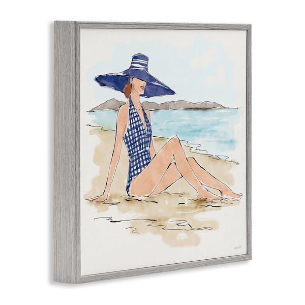 Sun Bathing Beauty by Anne Tavoletti Gray Framed People Giclee Art Print 12 in. x 12 in.