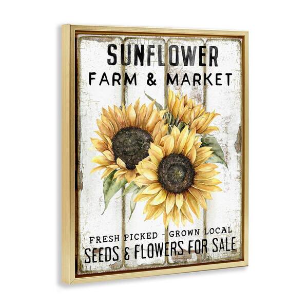 Sunflower Farm & Market by Creatif Belle Gold Floater Frame Nature Graphic Art Print 21 in. x 17 in.