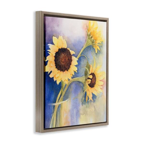 Sunflower Trio in Vase by Stephanie Fielden Brown Floater Frame Nature Graphic Art Print 31 in. x 25 in.