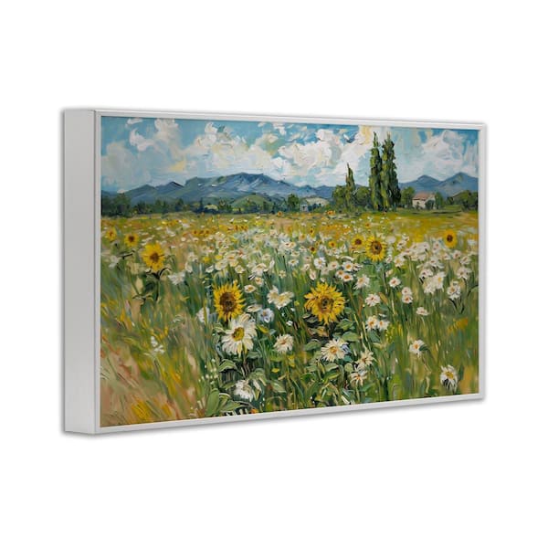 Sunflower and Daisy Meadow by Arlington Prints White Framed Nature Giclee Art Print 20 in. x 30 in.