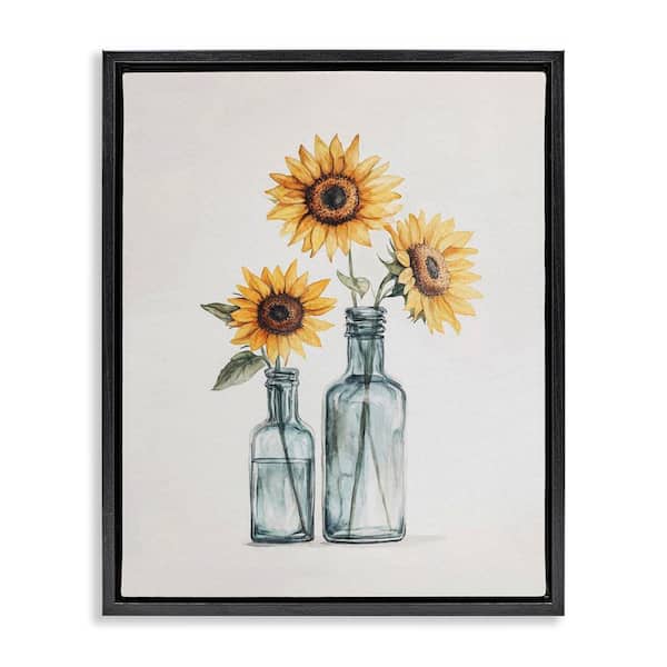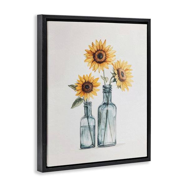 Sunflowers in Bottles Trio by Svetlana Aleynikova Black Floater Frame Nature Graphic Art Print 31 in. x 25 in.