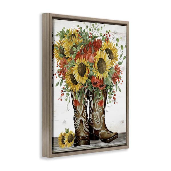 Sunflowers in Western Boots by Cindy Jacobs Brown Floater Frame Nature Graphic Art Print 31 in. x 25 in.