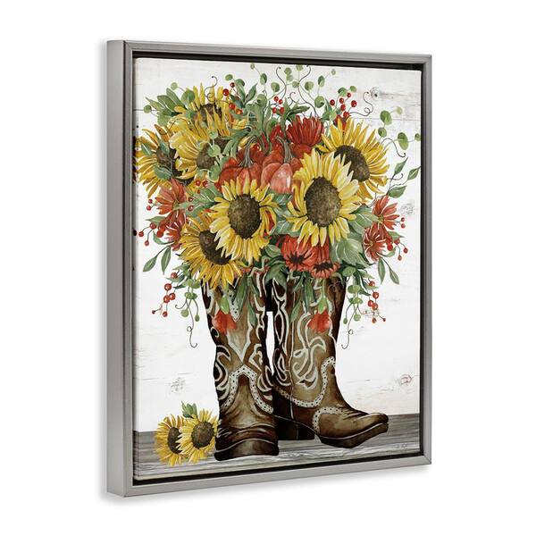 Sunflowers in Western Boots by Cindy Jacobs Gray Floater Frame Nature Graphic Art Print 31 in. x 25 in.
