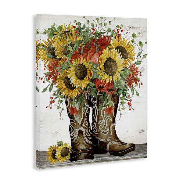 Sunflowers in Western Boots by Cindy Jacobs Unframed Nature Graphic Art Print 30 in. x 24 in.