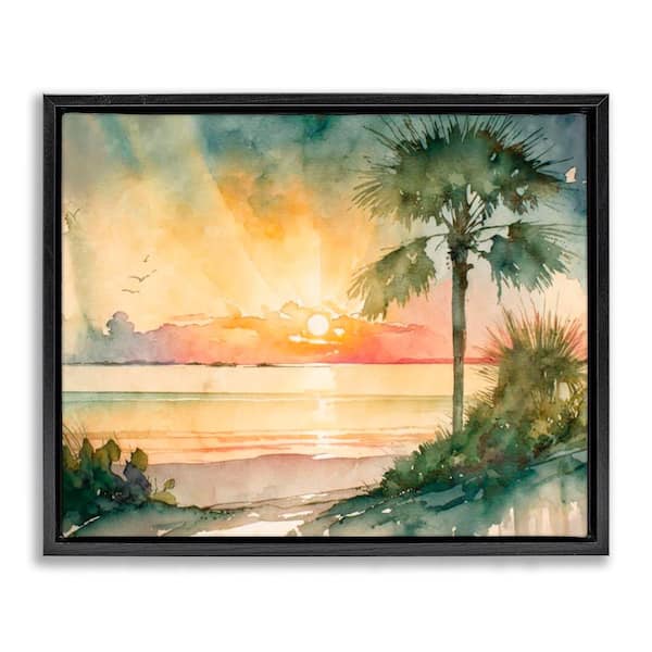 Sunrise Through Palms by Svetlana Aleynikova Black Floater Frame Nature Graphic Art Print 17 in. x 21 in.