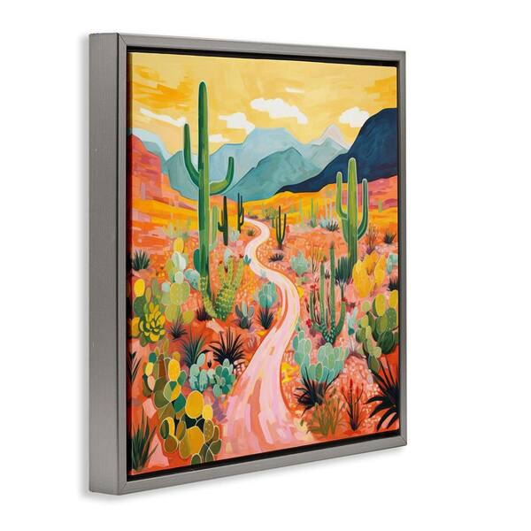 Sunrise over Desert Path by LSR Design Studio Gray Floater Frame Nature Graphic Art Print 25 in. x 25 in.