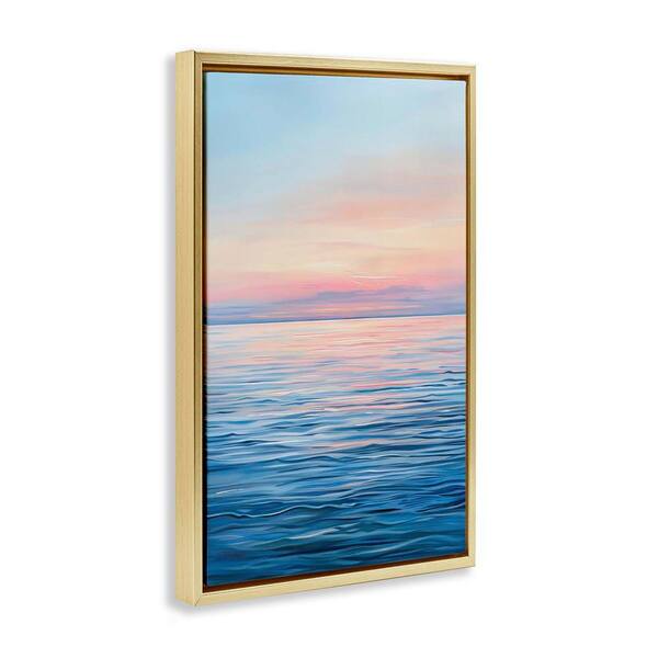 Sunrise over Ocean Gradient by LSR Design Studio Gray Floater Frame Nature Graphic Art Print 31 in. x 21 in.