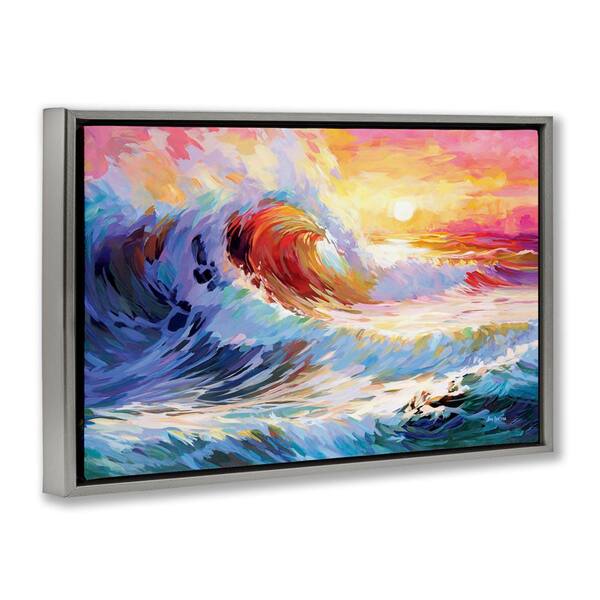 Sunrise over Ocean Wave by Leon Devenice Gray Floater Frame Coastal Graphic Art Print 17 in. x 25 in.