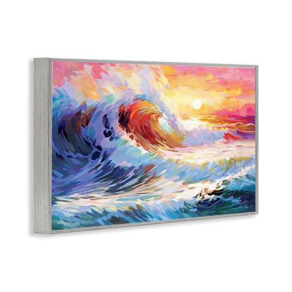 Sunrise over Ocean Wave by Leon Devenice Gray Framed Coastal Giclee Art Print 20 in. x 30 in.
