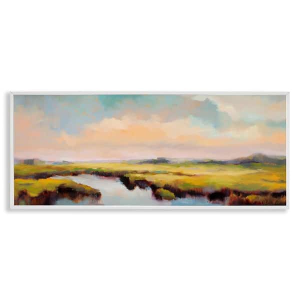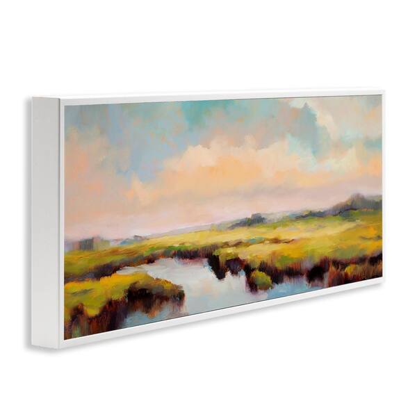Sunrise over Rural Stream by Odile White Framed Nature Giclee Art Print 10 in. x 24 in.