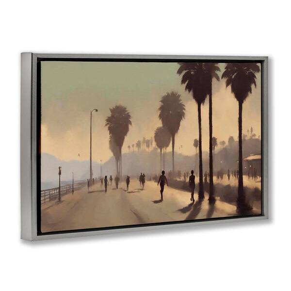 Sunset Skater on Boardwalk by Noah Bay Gray Floater Frame Nature Graphic Art Print 21 in. x 31 in.