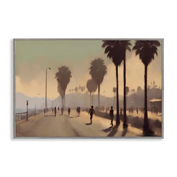 Sunset Skater on Boardwalk by Noah Bay Gray Framed Nature Giclee Art Print 20 in. x 30 in.